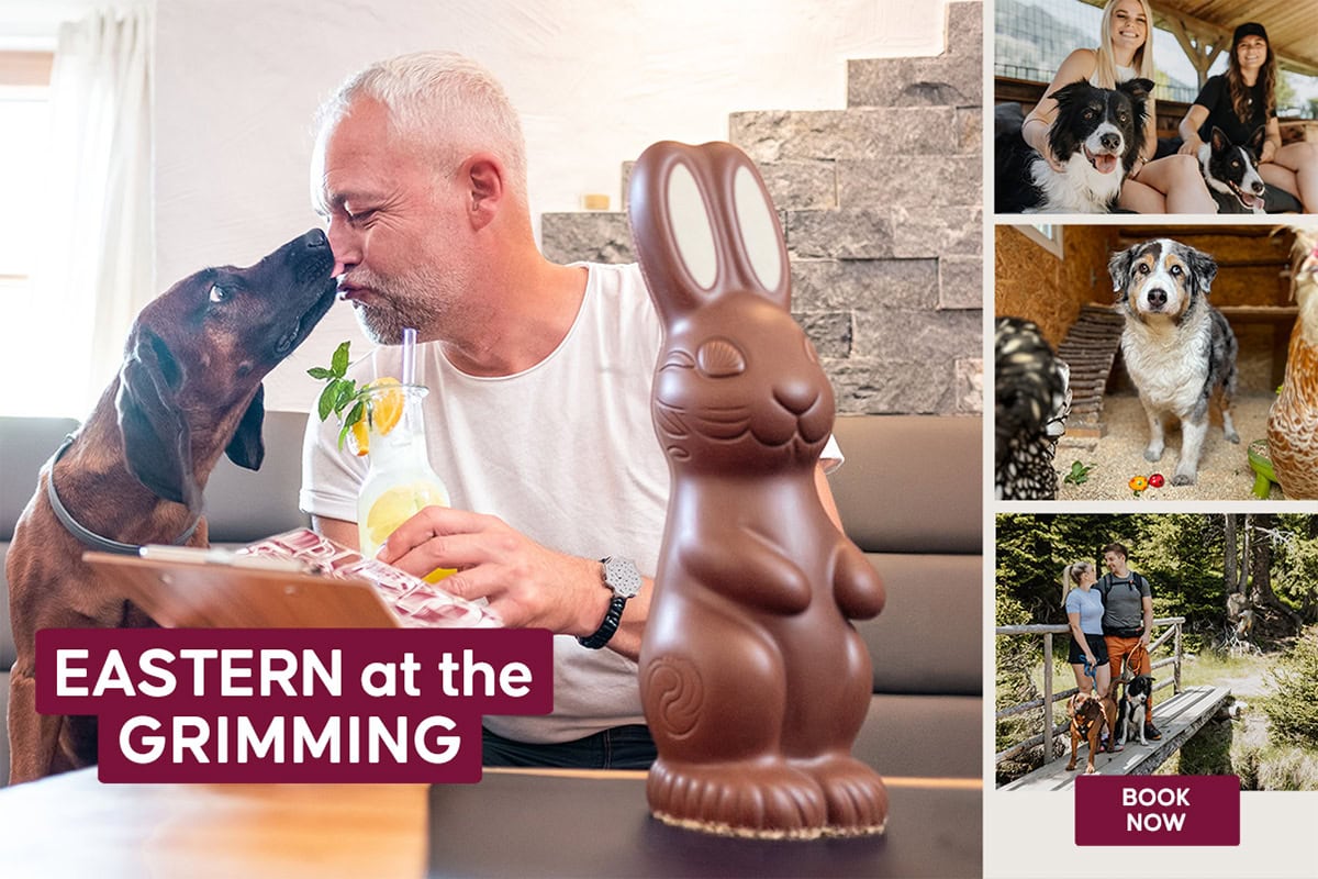 At the Grimming Dog Hotel, your dogs are part of everything: whether at breakfast, dinner in the restaurant, on the terrace, or relaxing in your room – and happy barking is always welcome. Your dog is respected, pampered, and treated as a valued guest. Your holiday with your dog – naturally at Hotel Grimming in the Salzburg region. A vacation with your best friend!